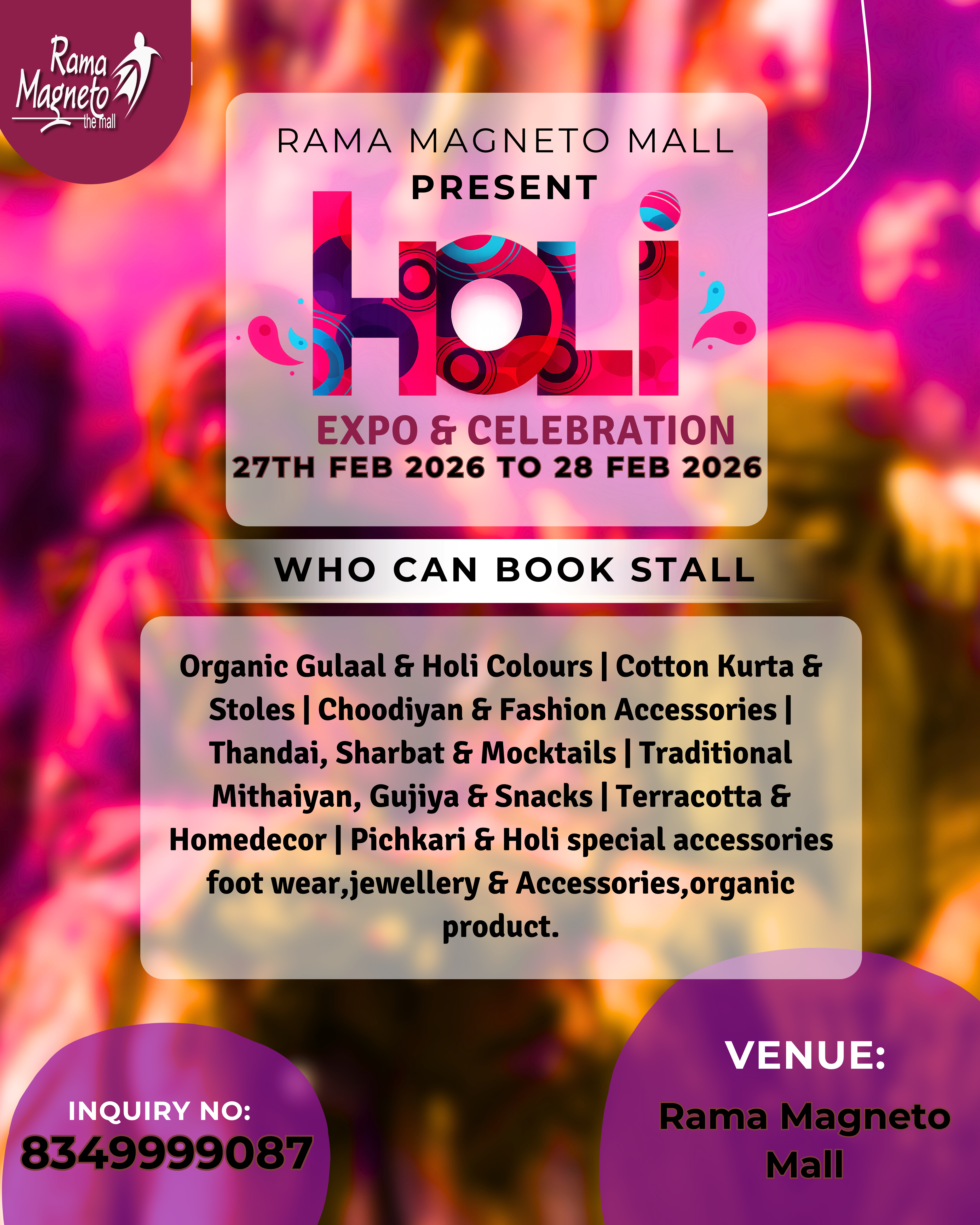 Get ready to celebrate the festival of colors in the most vibrant way at Rama Magneto Mall, Bilaspur!