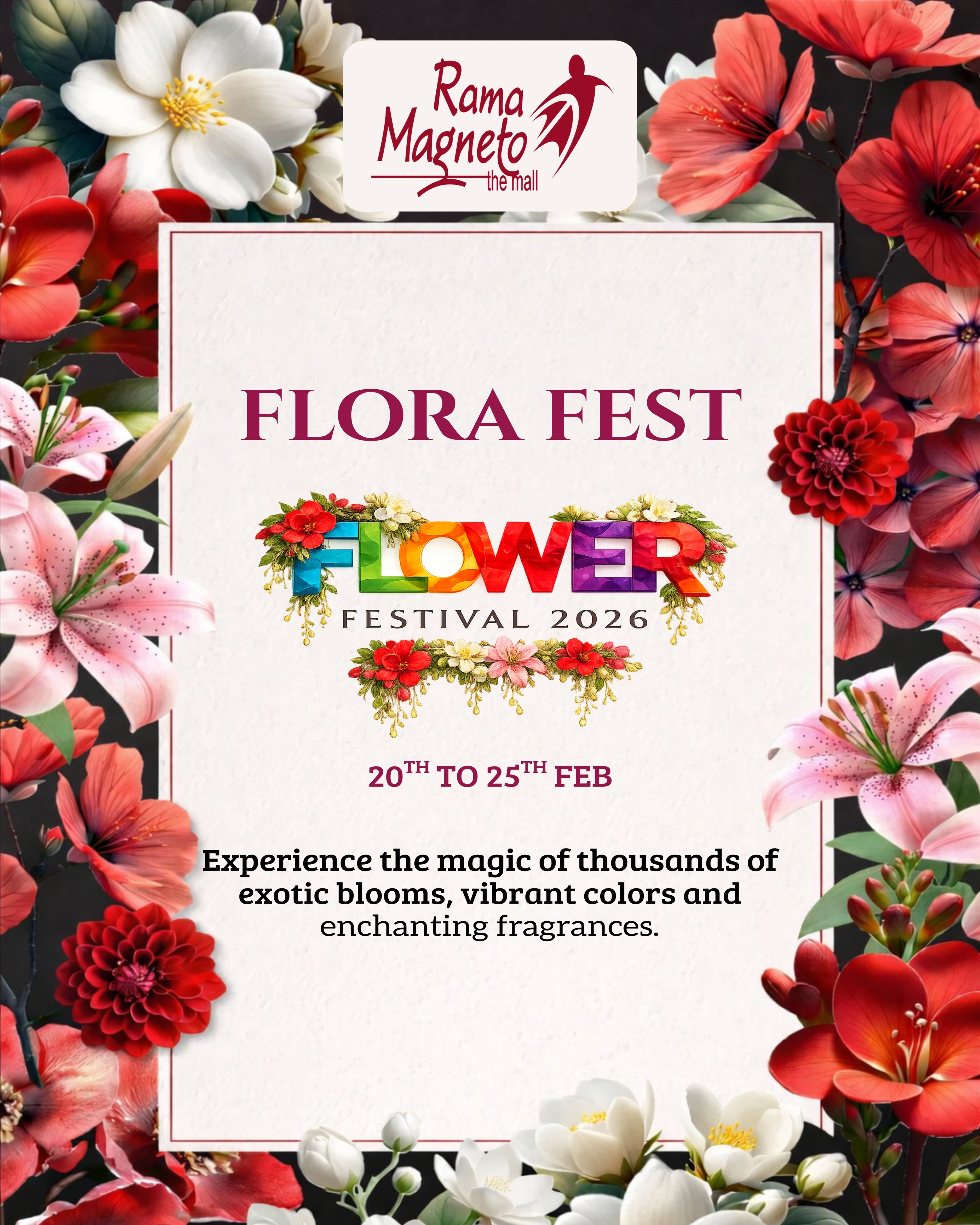 ? Flora Fest – A Celebration of Colors & Nature! ?Step into a world of blooming beauty at Flora Fest! ? Experience a vibrant showcase of fresh flowers, decorative plants, garden essentials, and nature-inspired décor — all under one roof.